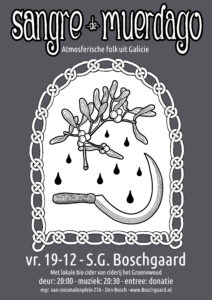 - 19-12 – Sangre de MuerdagoOpen – 20:00Muziek – 20:30Entree – op donatie Een draailier buiten een fantasy-fair? Ja het kan, we hebben het gecheckt…